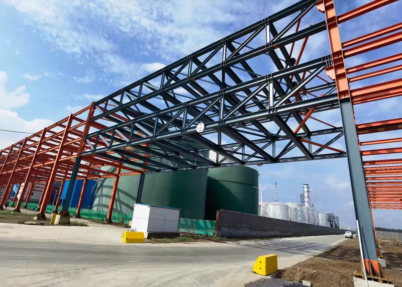 目前,该项目施工有序进行,已经完成四标段区域地下管网、钢结构及工艺管道除锈防腐工作,其它管道及设备保温保冷正在施工;十五标段区域地下管网、钢结构及工艺管道除锈防腐工作已经完成,其它管道及设备保温保冷正在施工;八标段刚刚开展地下管网防腐以及框架钢结构除锈防腐工作。